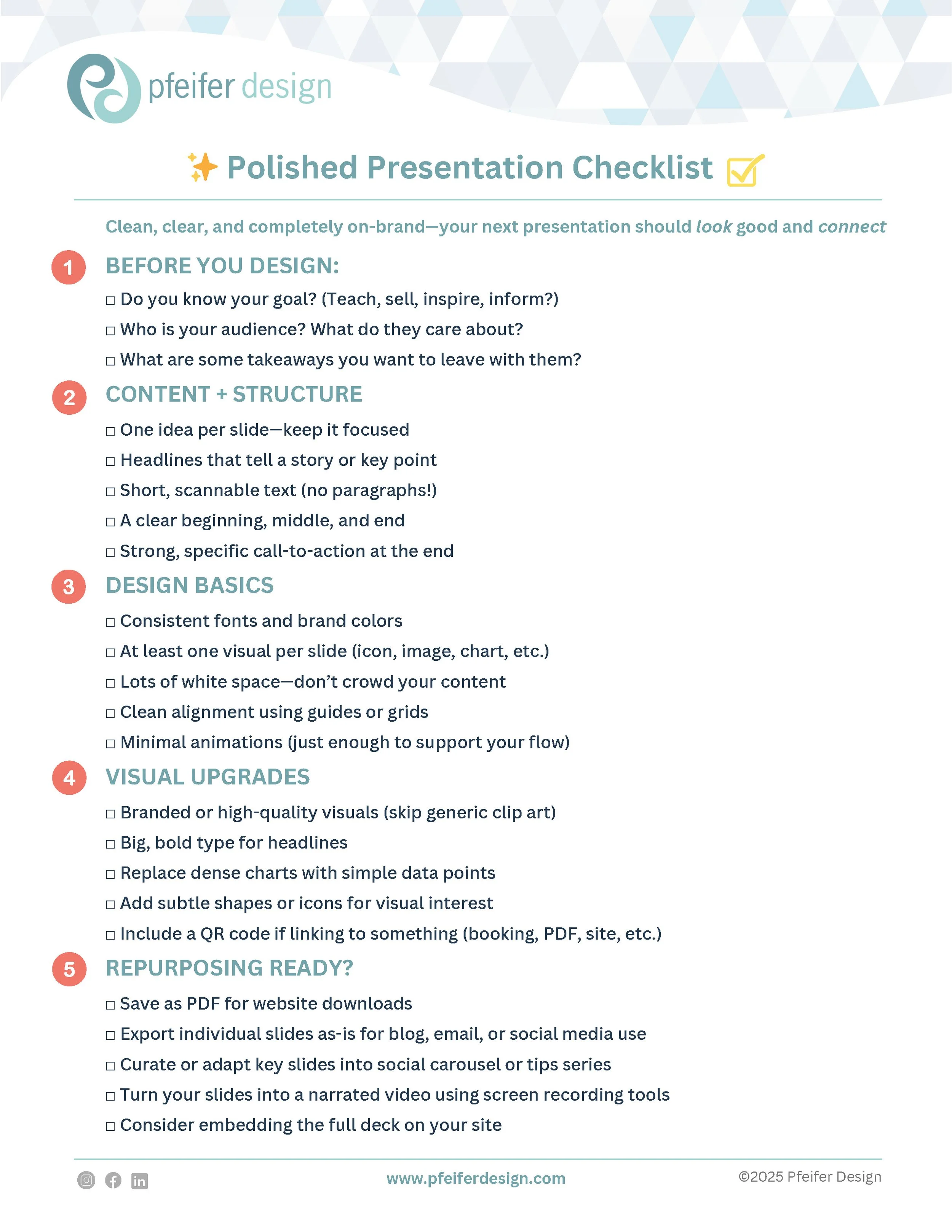 Use this checklist to make your next presentation clean, clear, and completely on-brand.